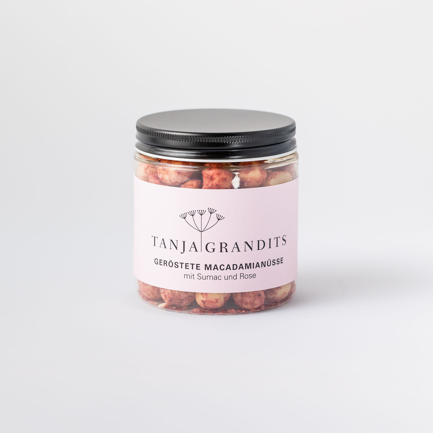 Zutaten: Macadamianüsse geröstet 86.9%, Rose 6.9% (Rosenblüten, Rosenwasser), Fleur de Sel, Randensaft, Randenpulver, Sumac 0.4%, Maisstärke,
