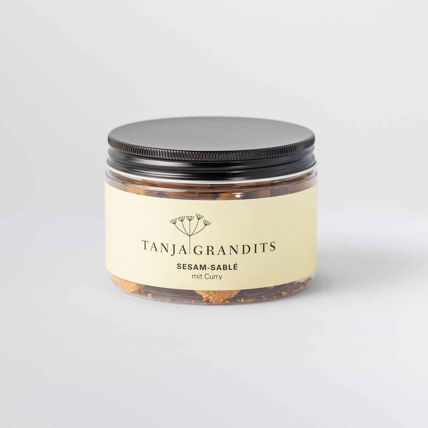 - Zutaten: Weizenmehl, Butter, Parmesan, Sesam 11.4%, Zucker, Eigelbpasteurisiert, Sesamöl 4.8%, Backpulver (E450, E500, E341), Curry 0.6% (enthält Senfsaat), Fleur de Sel, Glukose, Milch, Pektin (E440)